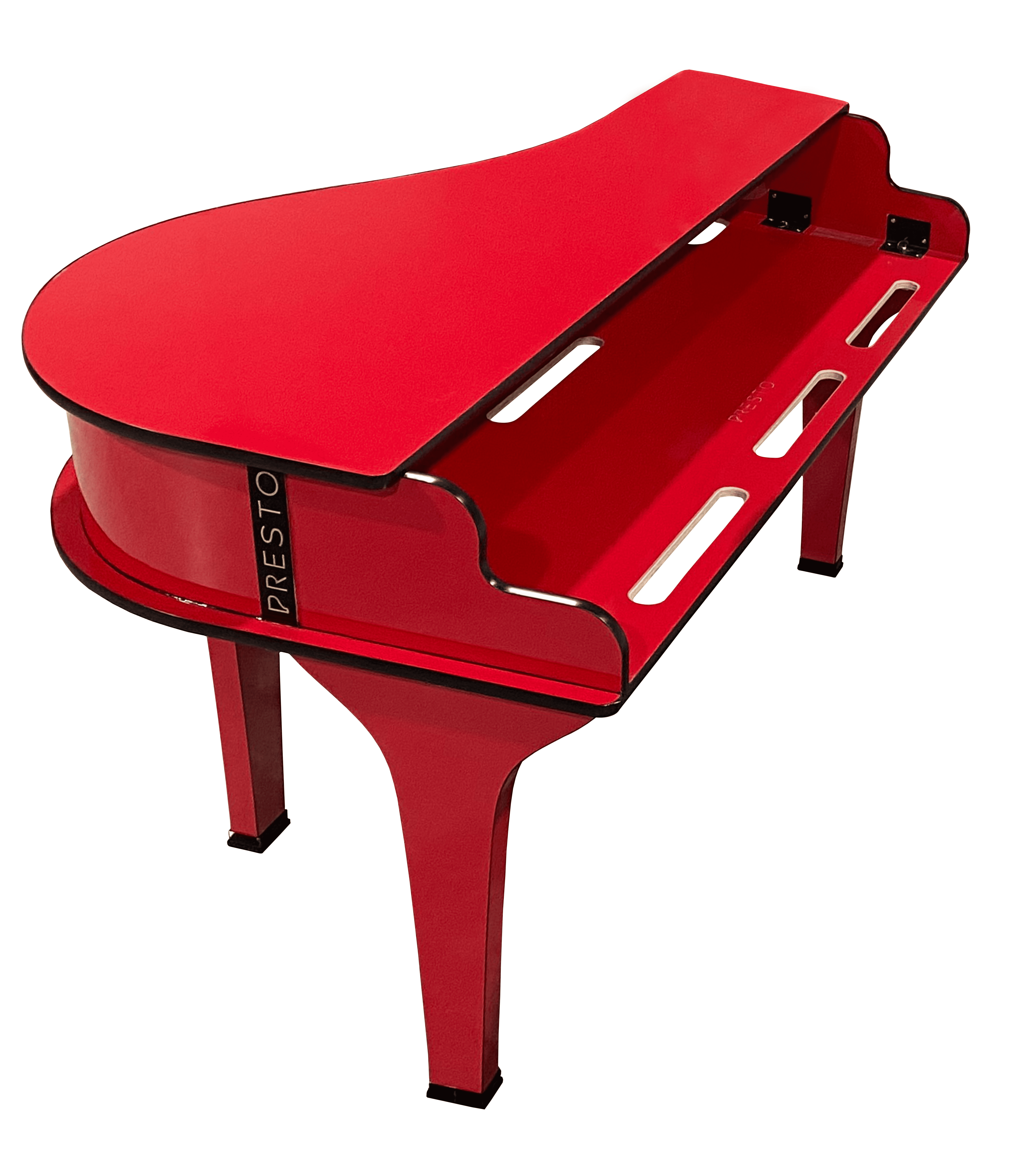 The Presto S30 is our flagship product. Weighing approximately 55 lbs, this piano shell is designed to be both portable and durable. Perfect for the touring artist or venue, the S30 also fits comfortably in homes and apartments. The high gloss black laminate finish results in a beautiful shell that fits in any environment.