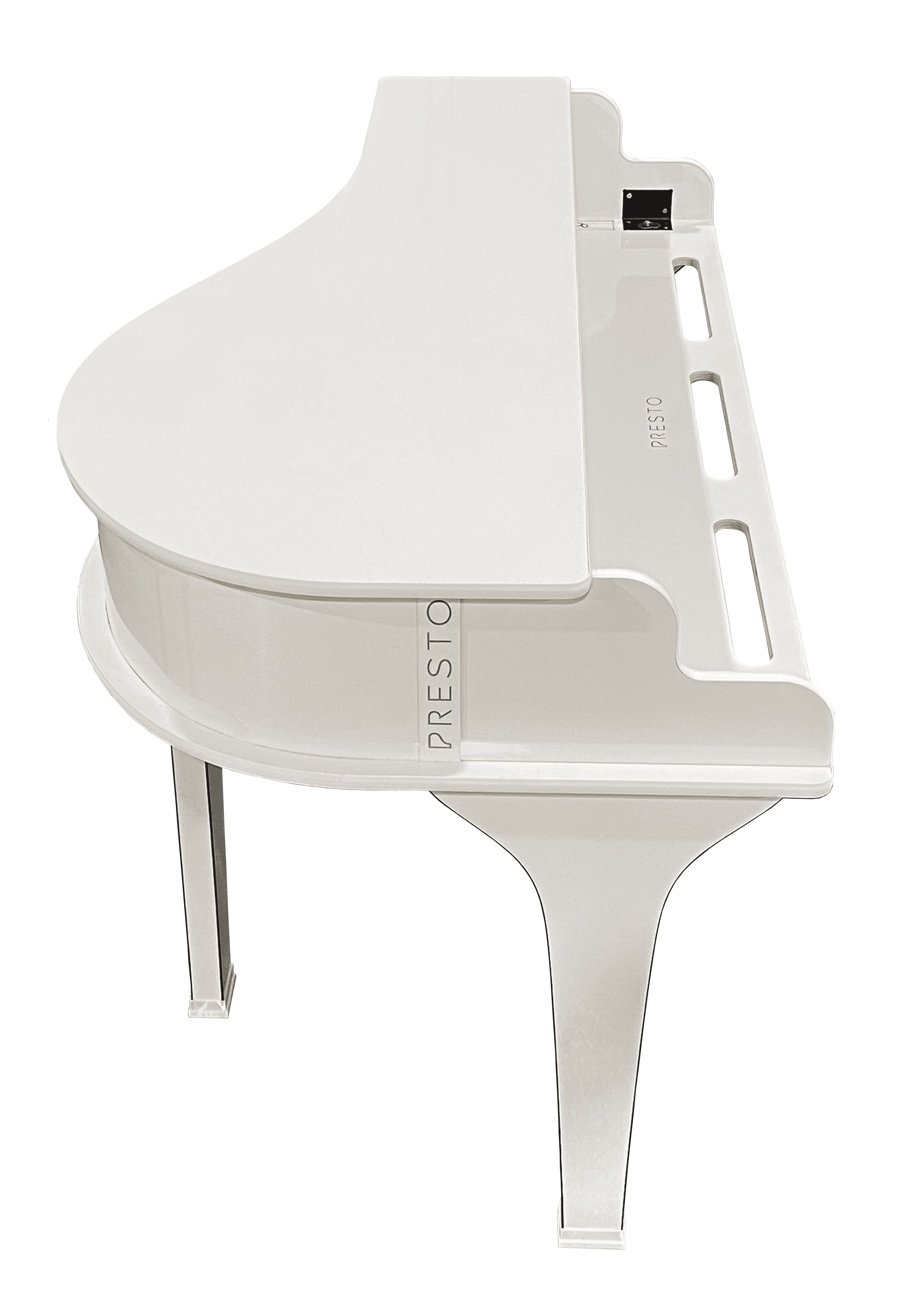 The Presto S30 is our flagship product. Weighing approximately 55 lbs, this piano shell is designed to be both portable and durable. Perfect for the touring artist or venue, the S30 also fits comfortably in homes and apartments. The high gloss black laminate finish results in a beautiful shell that fits in any environment.